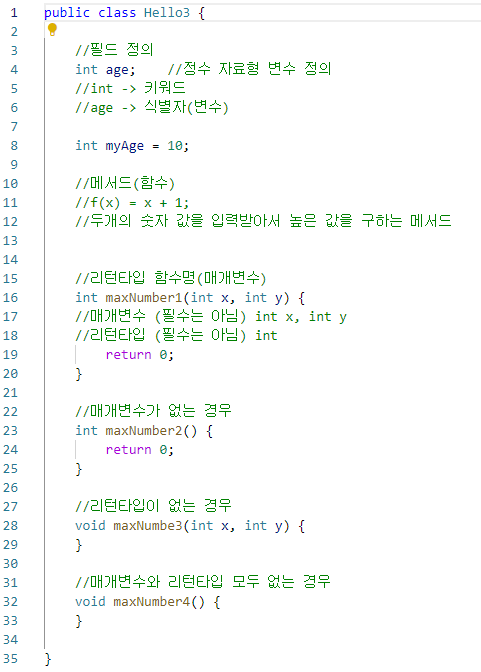· 메소드는 기능을 수행하기 위해서 선언 및 정의됨