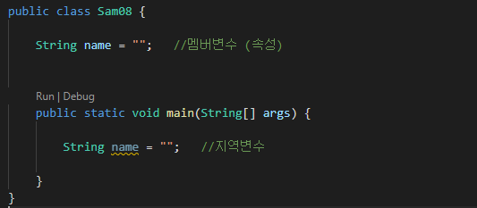 멤버변수 (소속 변수, 클래스 변수, 필드, 속성 변수)