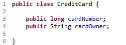 - 신용카드의 속성 : 카드번호(cardNumber), 소유자(cardOwner) 등을 고려