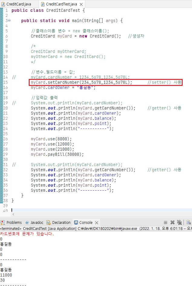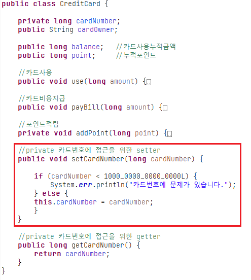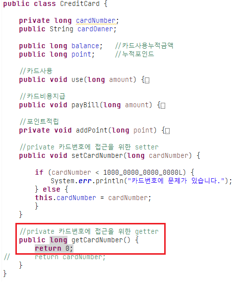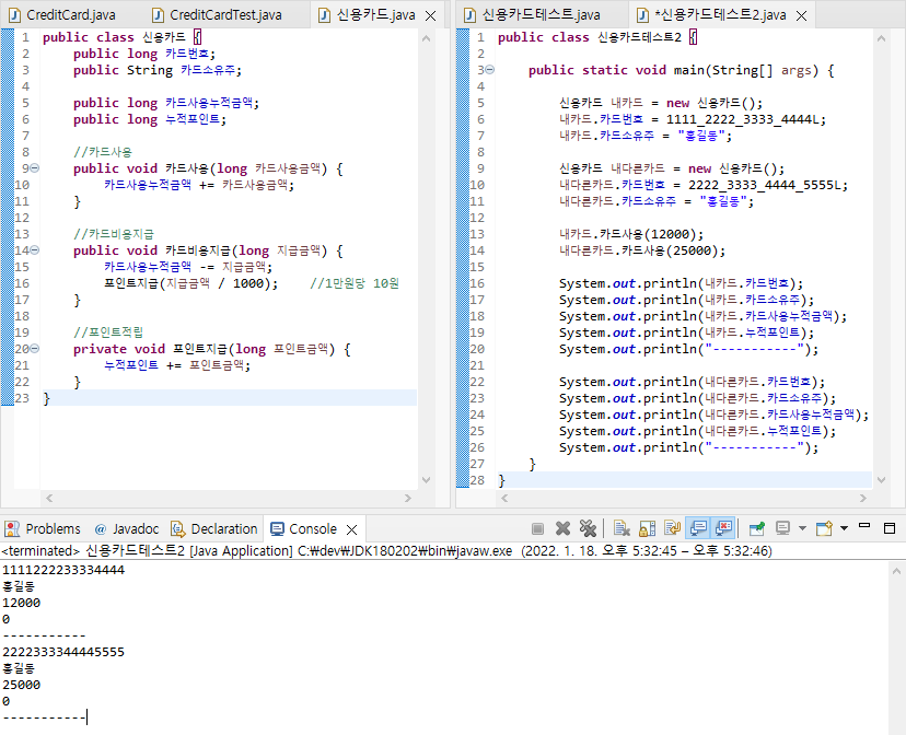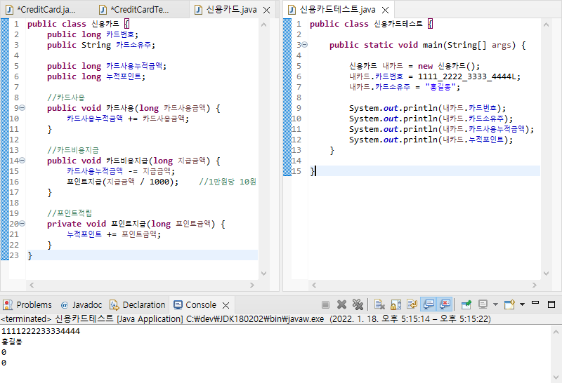 - 신용카드를 추상화한 클래스 CreditCard를 구현