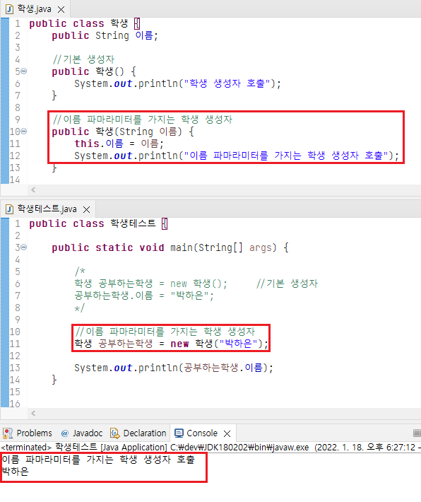 인자가 있는 생성자