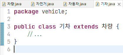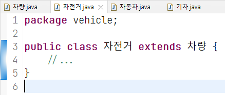 - 차량에 정의된 필드와 메소드는 자동차에서 상속받을 수 있음