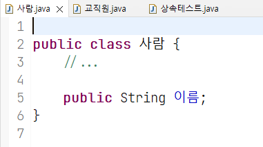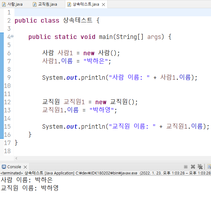 - 사람에 정의된 필드와 메소드는 모두 교직원이 상속받을 수 있음