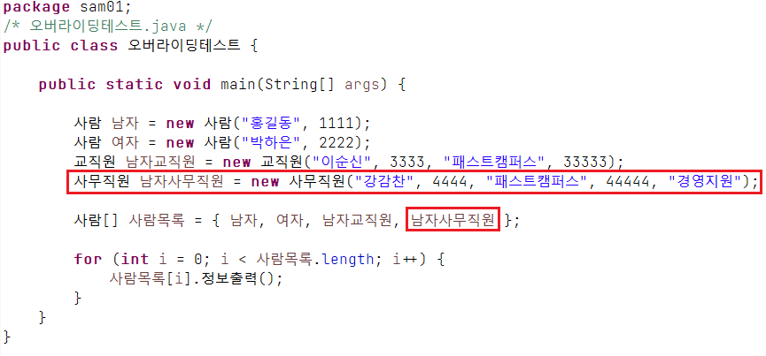 오버라이딩 예제 (1)