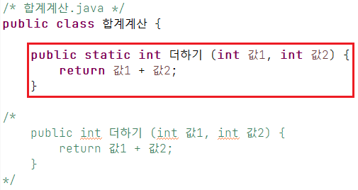 - 정적메소드의 오버로딩은 이름이 같고 매개변수(파라미터)가 다르면 가능