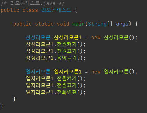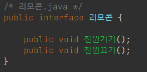 예) 리모콘 인터페이스를 선언