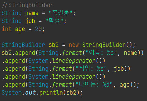 - String 클래스보다는 StringBuffer 클래스를 사용해야함