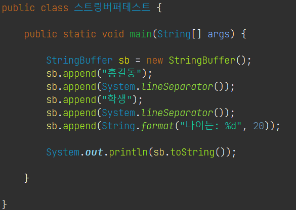 - 이를 해결하기 위해서 불변이 아닌 가변의 속성을 가지는 StringBuffer 클래스를 사용