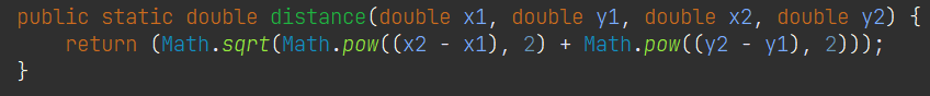 - 두 점 사이의 거리 값을 구하는 메소드 구현