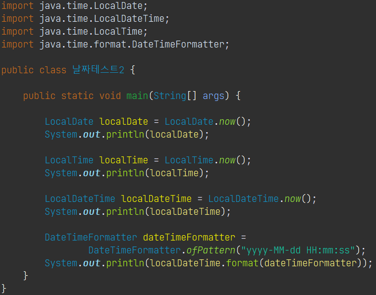 - JDK1.8에서 java.time 패키지에 기존 기능에서 개선된 클래스 추가 (대표적으로 LocalDate, LocalDateTime)