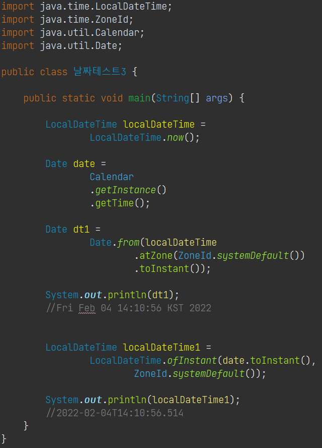 - Calendar 클래스 이후, 대부분의 메서드는 Calendar에서 가져오고 Date는 저장의 용도로만 사용