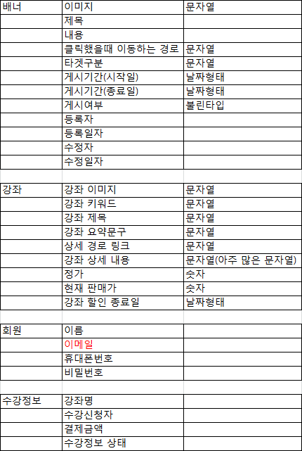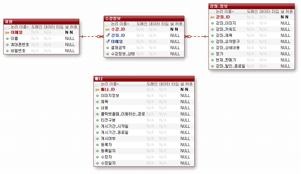 기능별 데이터 구성 (simple ERD)