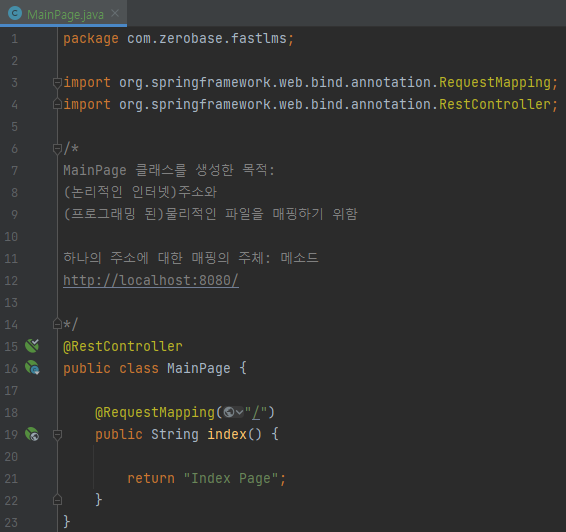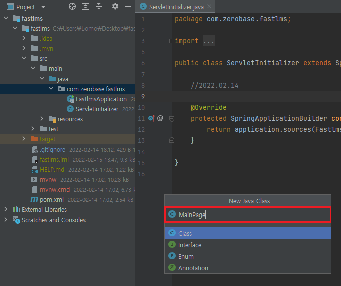 MainPage 클래스 생성 목적: