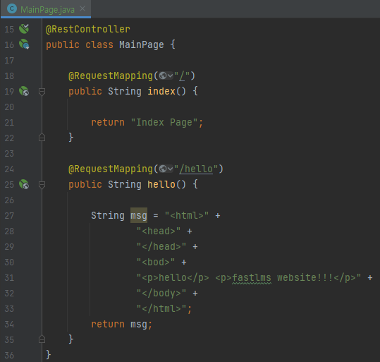 매핑을 해주는 것이 컨드롤러(@RestController)