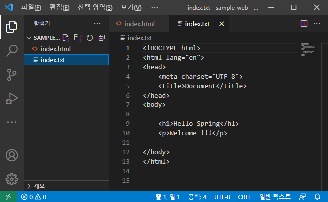 index.html 파일을 복사하여서 index.txt 파일을 추가함