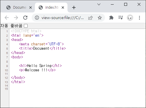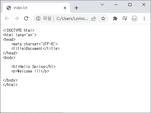 index.html 의 경우도 소스보기를 하면 text 파일과 동일한 내용을 볼 수 있음
