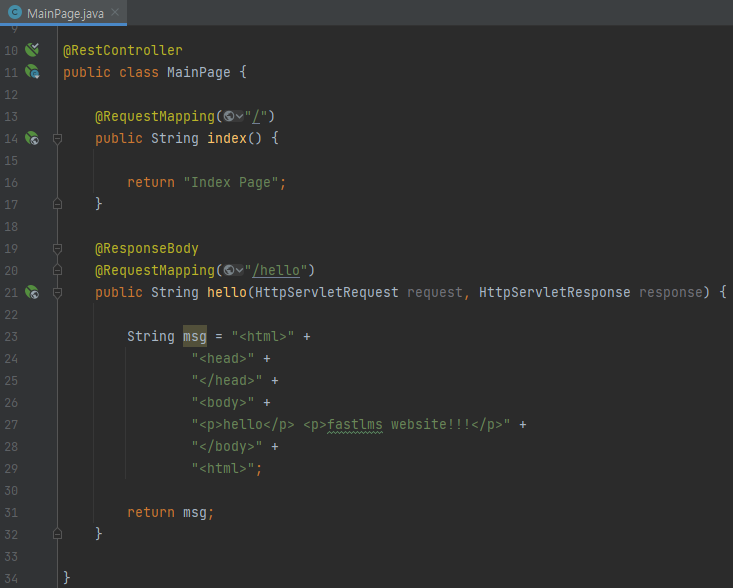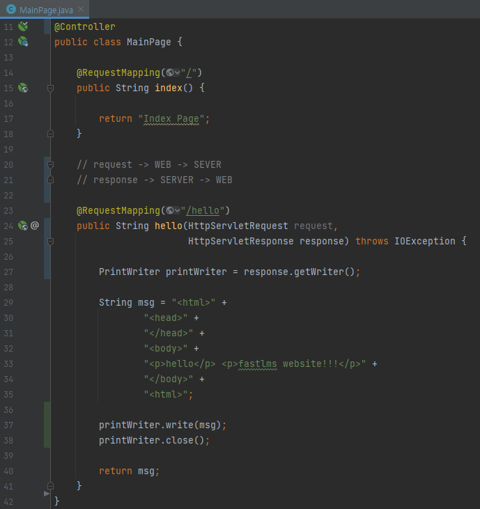 // 스프링 -> MVC (View -> 템플릿엔진 화면에 내용을 출력(html))