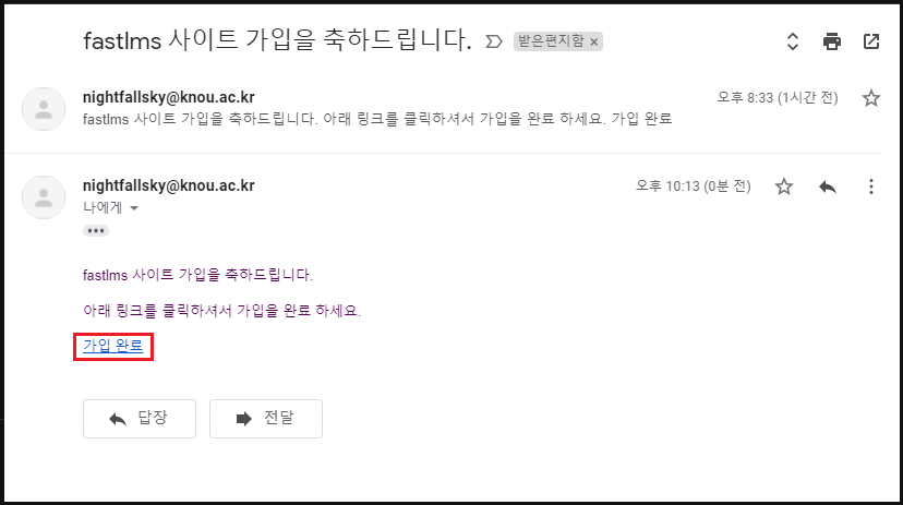 - '가입 완료' 링크 클릭 - 계정 활성화(새 창)