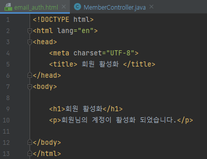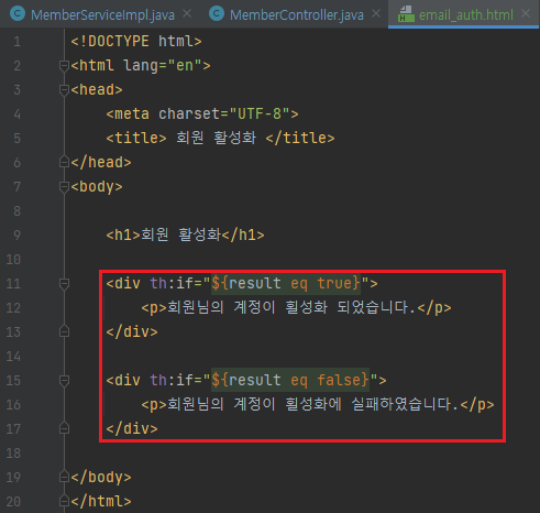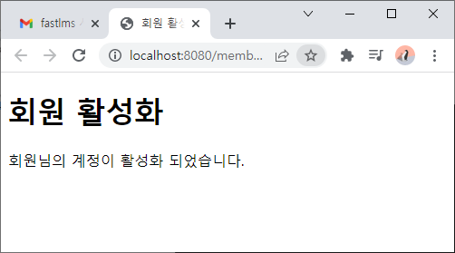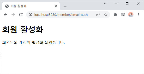 - 인증키 값에 따라서 결과값(true) 반환되어 계정 활성화 성공