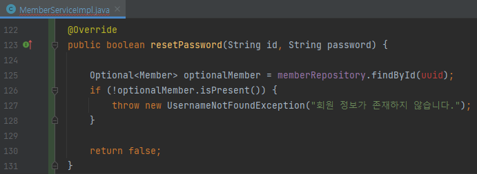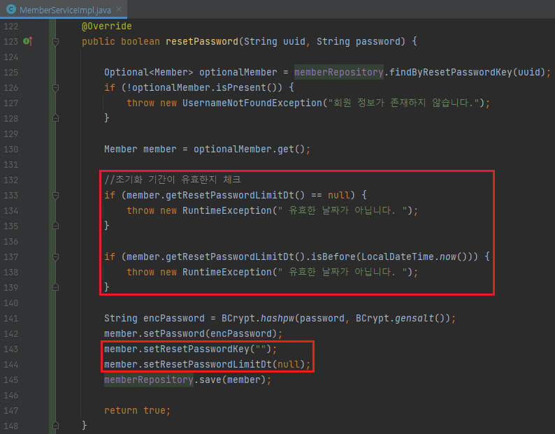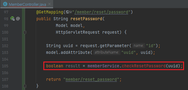 boolean result = memberService.checkResetPassword(uuid);