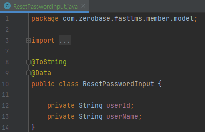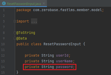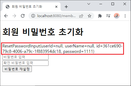 - ResetPasswordInput 파라미터를 받고