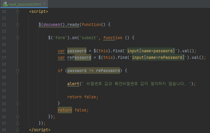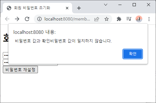 - alert()를 이용하여 입력값이 다름을 확인