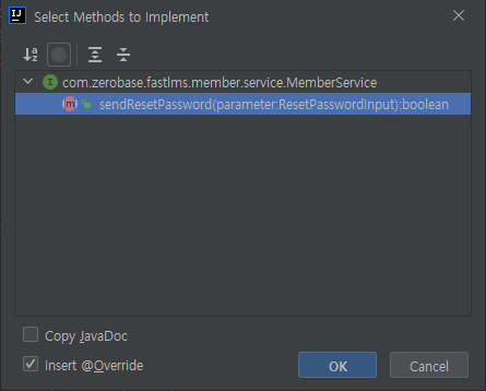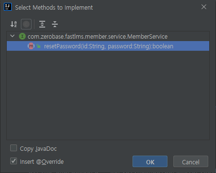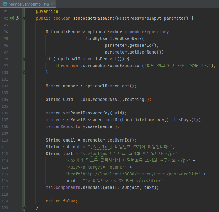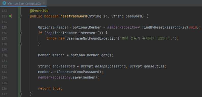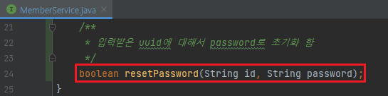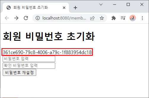 - resetPassword() 에서는 초기화 인증키 값(uuid)를 받아오고