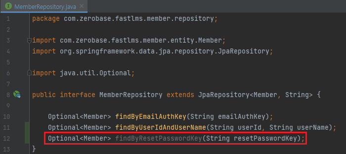 Optional<Member> optionalMember = memberRepository.findByResetPasswordKey(uuid);