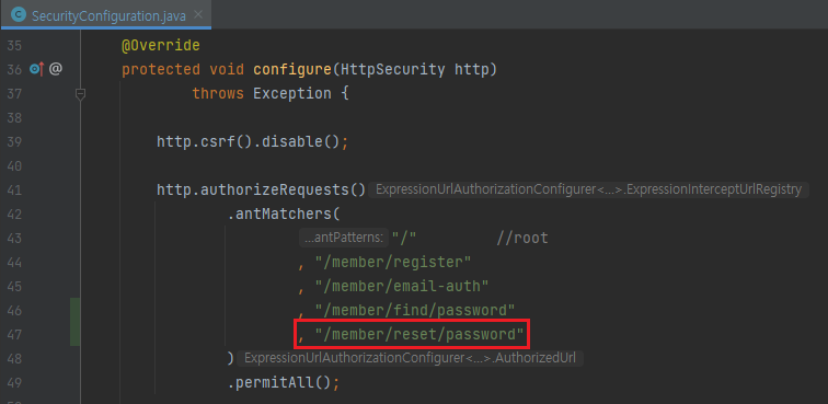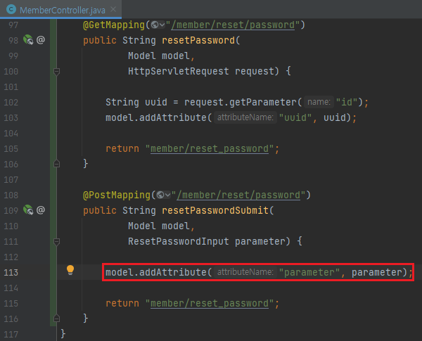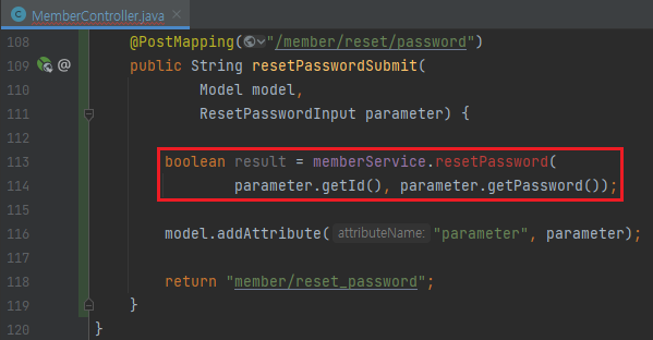 - resetPasswordSumit()을 생성하고 맵핑