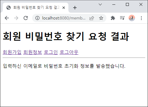 - 비밀번호 찾기 요청 결과 페이지 생성