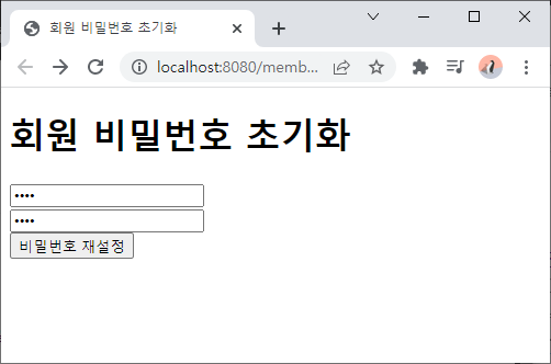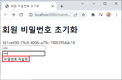 - 회원 비밀번호 초기화 - 비밀번호 재설정
