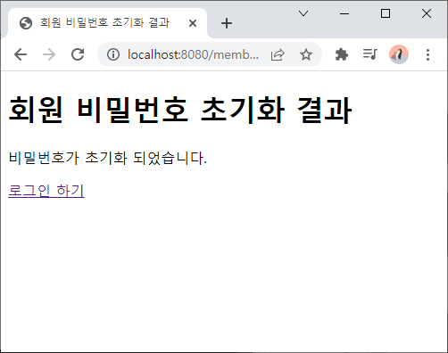 - 비밀번호 초기화 결과 - 성공 - 로그인 하기