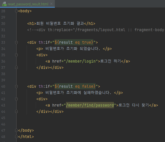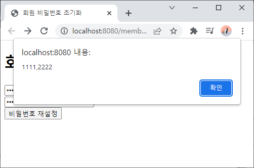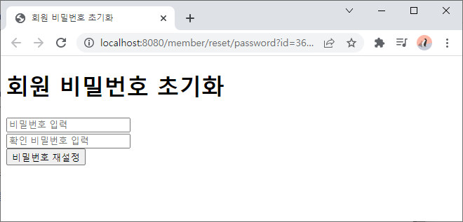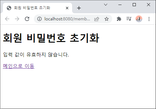 비밀번호 초기화 페이지 연결 테스트