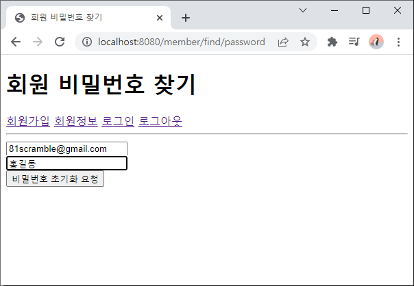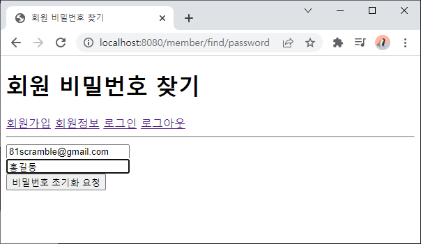 - localhost:8080/member/find/password