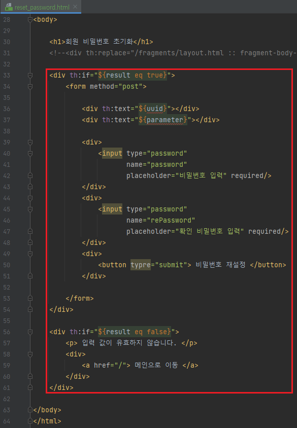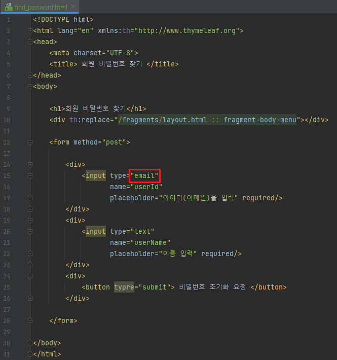 <button typre="submit"> 비밀번호 재설정 </button>