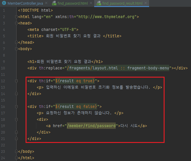 - 결과에 따라 비밀번호 찾기 결과 페이지로 보냄