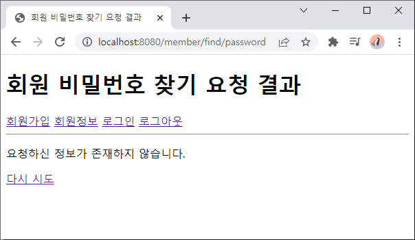 - 값이 없거나 틀린 경우 다시 시도 링크를 보여줌