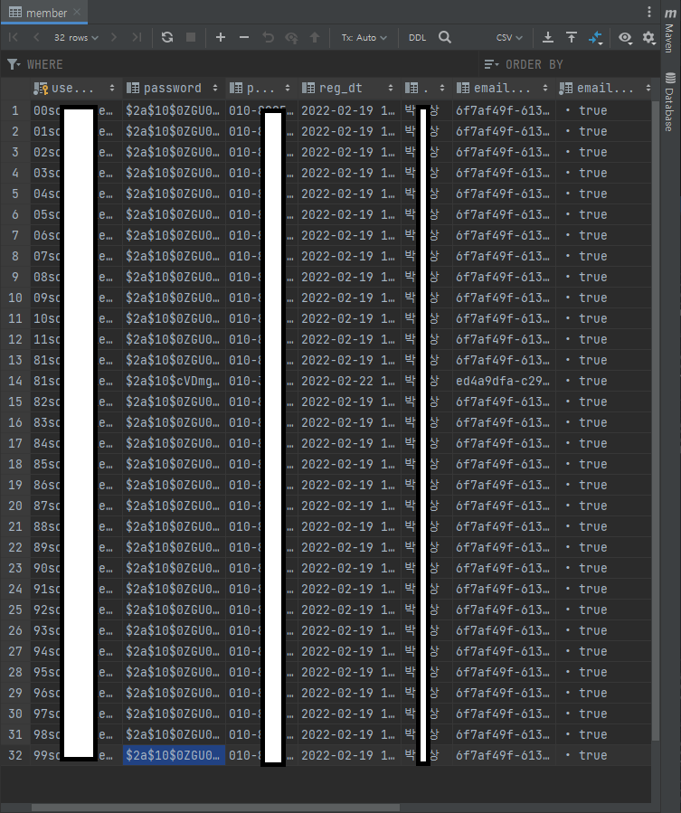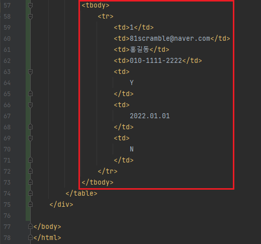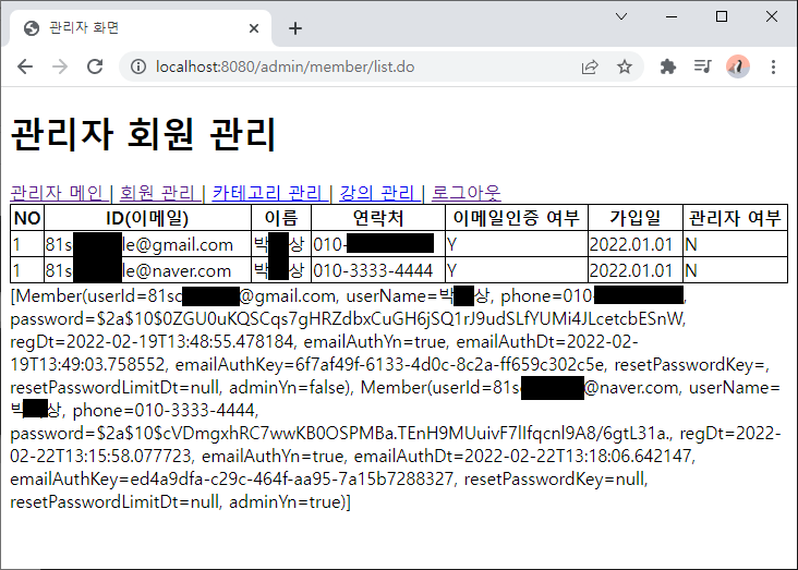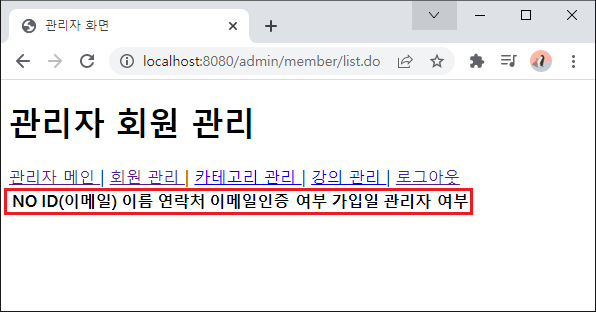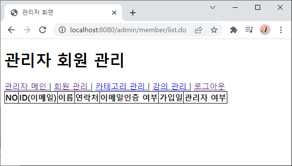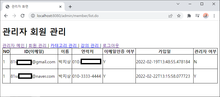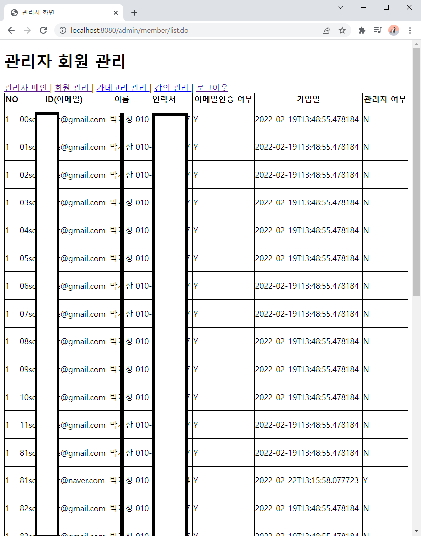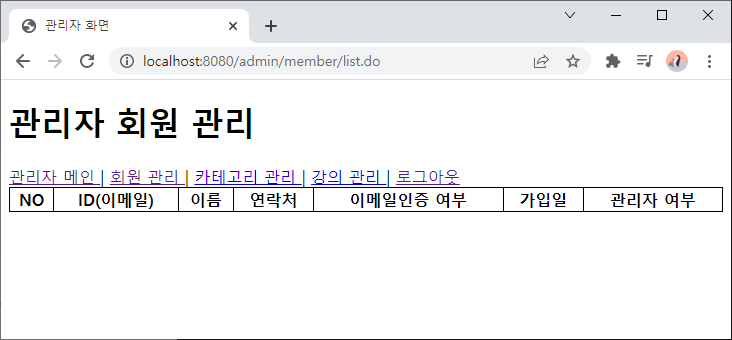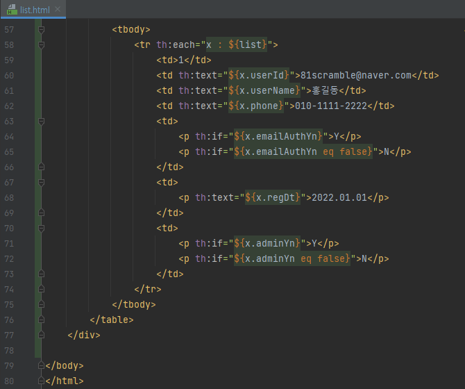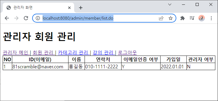 - 관리자 회원 관리 페이지 테이블 샘플 값 입력