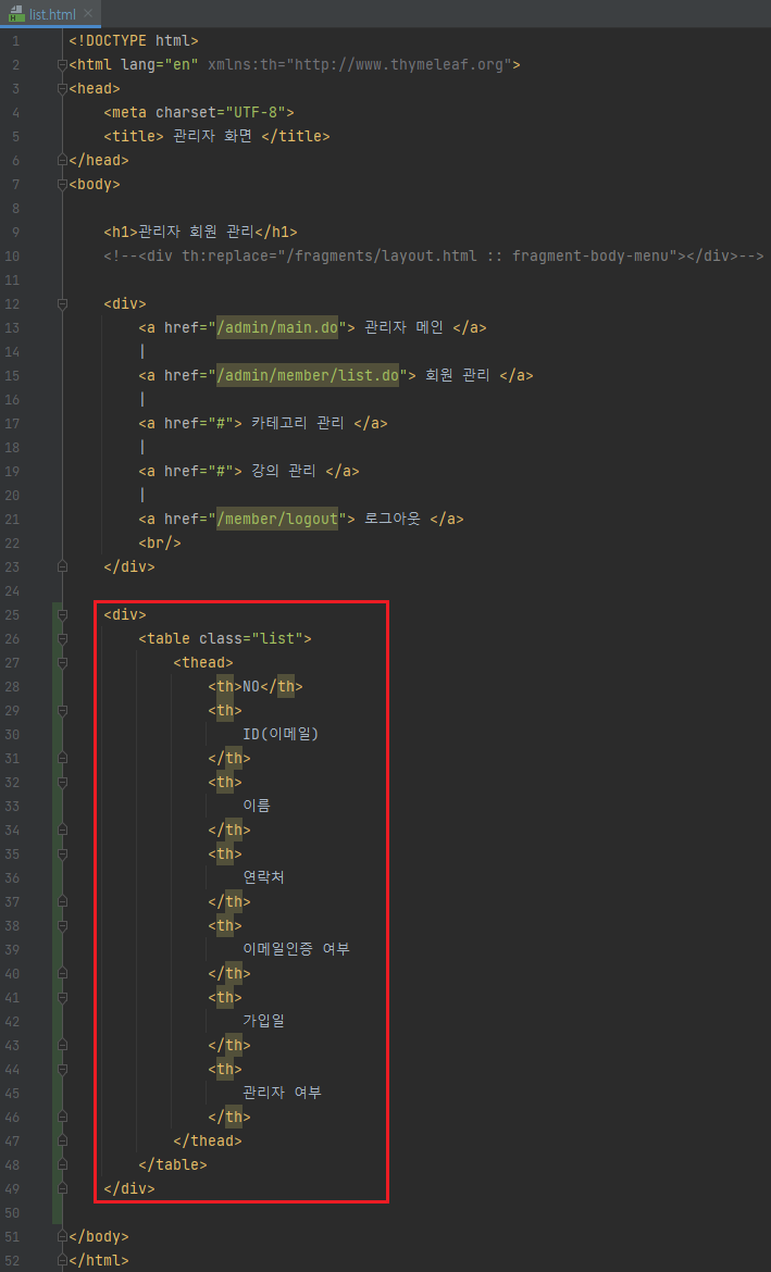 - 관리자 회원 관리 페이지 테이블에 스타일 적용