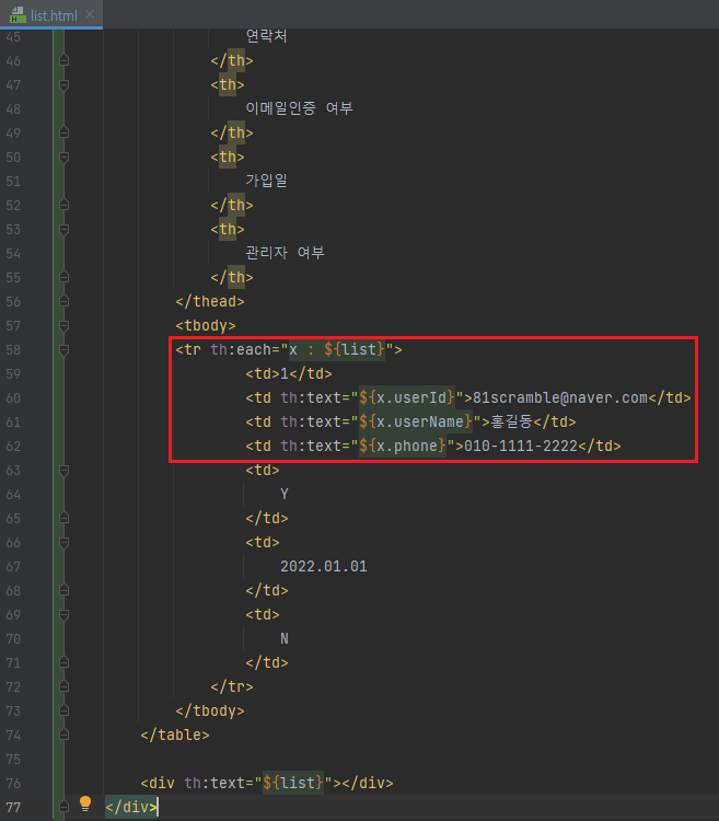 <td th:text="${x.userId}">81scramble@naver.com</td>