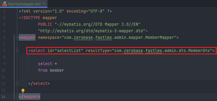<select id="selectList" resultType="com.zerobase.fastlms.admin.dto.MemberDto">