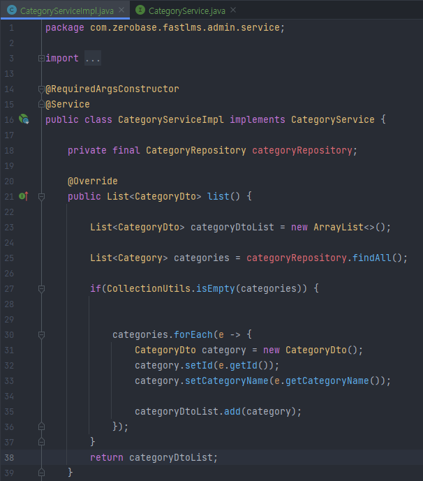 List<CategoryDto> list = categoryService.list();