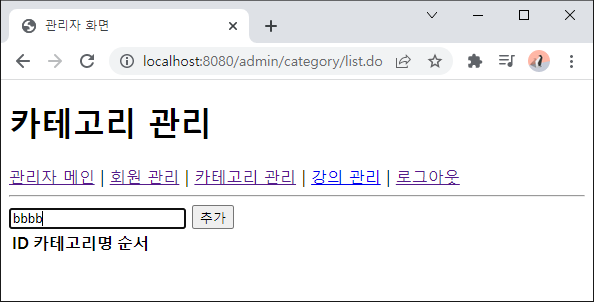 - 카테고리 관리 - 카테고리 'bbbb' 추가