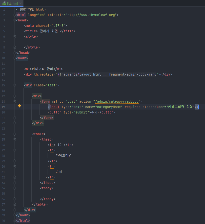 - 카테고리 관리 페이지 생성