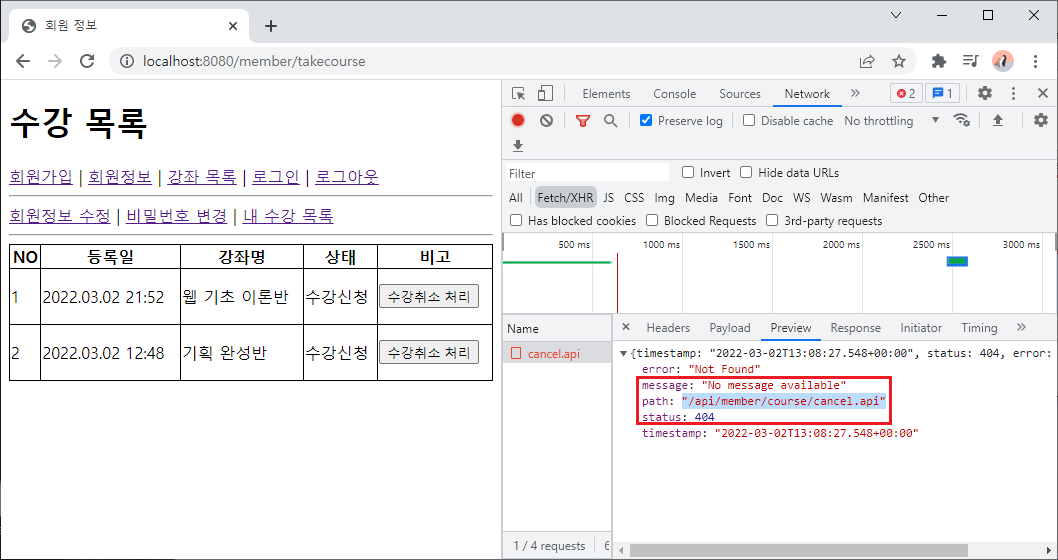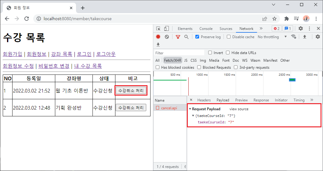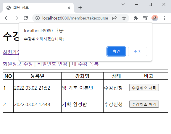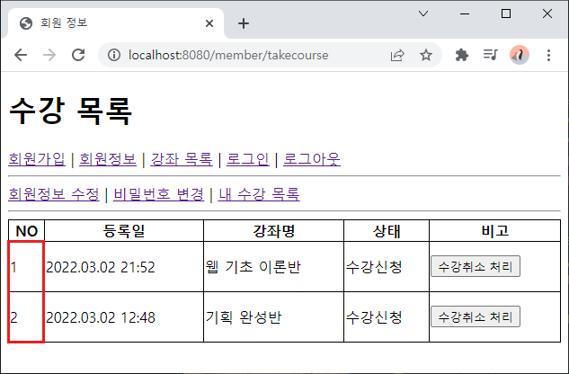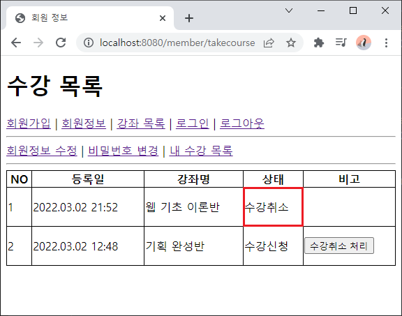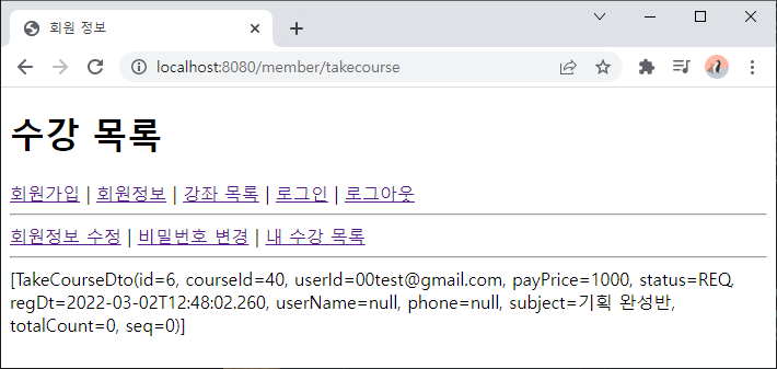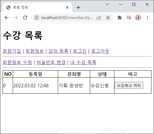 | [Zero-base] 8-6. 강좌 관리 - 강좌별 강좌 신청 내역 구현 (0) | 2022.03.03 |