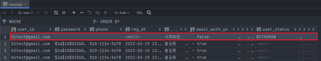 - 탈퇴한 회원에 대한 상태가 필요함