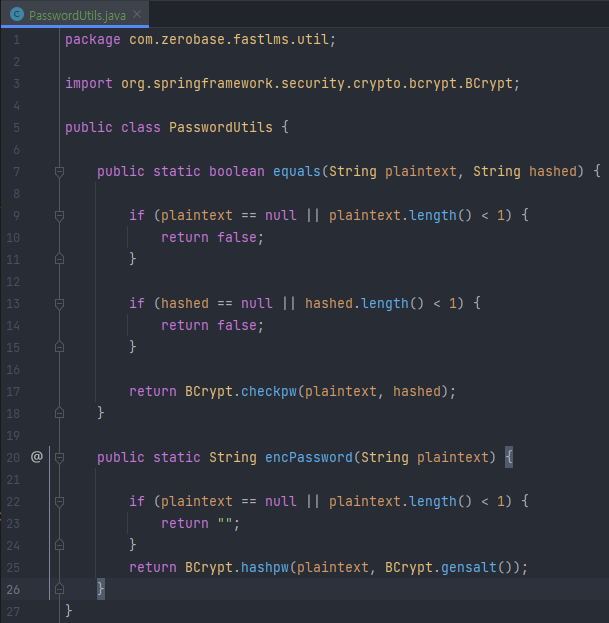 - 평문 패스워드를 암호화하는 메서드