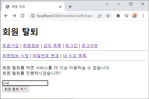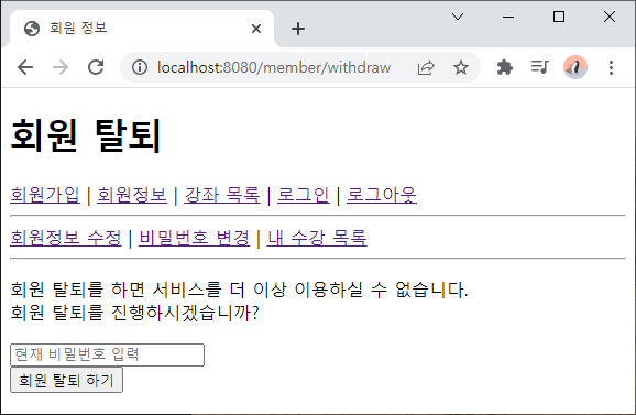 - 회원 정보에서 회원 탈퇴 링크 추가