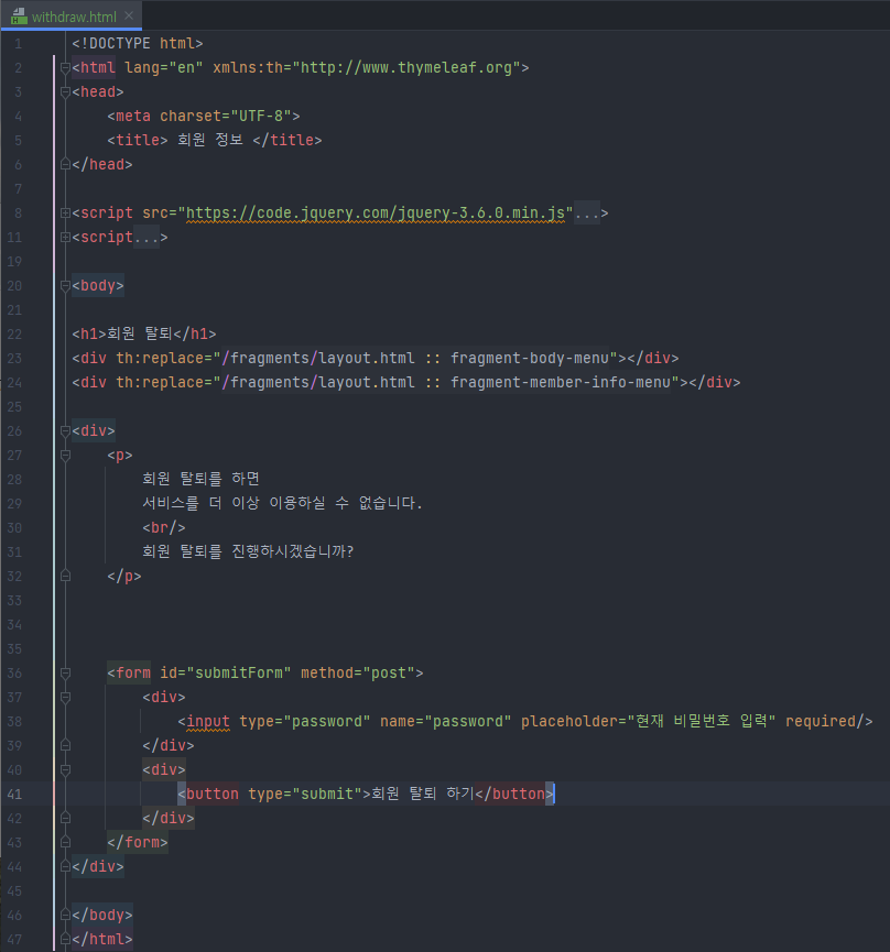 <button type="submit">회원 탈퇴 하기</button>