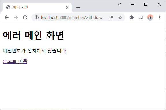 - 비밀번호가 맞는 경우 탈퇴 처리 완료
